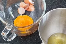 - Als erstes trennst Du die 4 Eier in Eigelb und Eiweiß. Das Eigelb gibst Du am besten direkt in Deine Rührschüssel. Das Eiweiß schlägst mit den Quirlen des Handmixers steif.