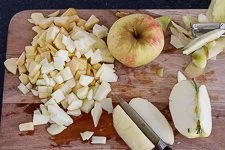 - Die Äpfel schälen und in kleine Stücke schneiden.