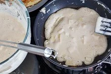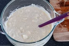 - Dann hebst Du die Apfelstücke ebenfalls unter Deine Pfannkuchenmasse. Jetzt gerne ca. 10 Minuten im Kühlschrank ruhen lassen.
