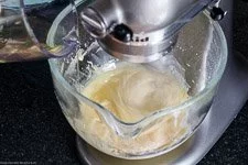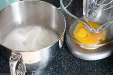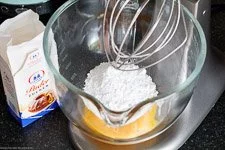 - Die Eigelbe mit dem Puderzucker schaumig schlagen.