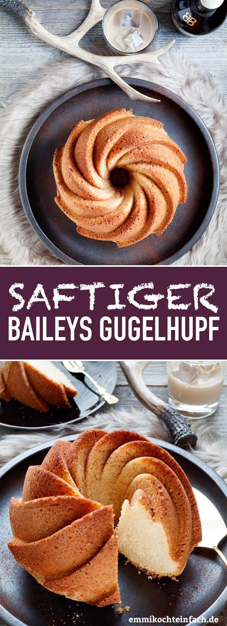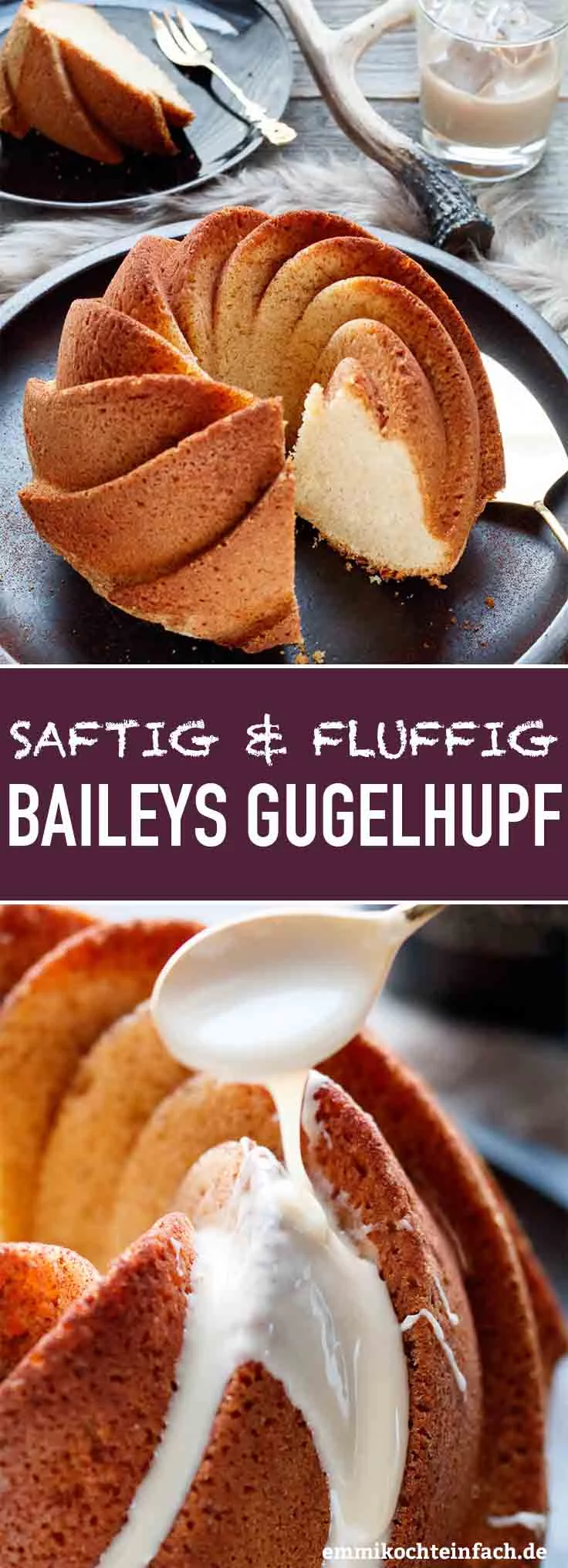 Fest steht, der Baileys verleiht dem Kuchen einen wunderbaren Geschmack. Und wenn Du den Baileys Geschmack noch intensivieren möchtest, kannst Du eine Bailey-Glasur auf den Gugelhupf geben. Die machst Du ganz einfach aus Puderzucker und Baileys. Sehr lecker.