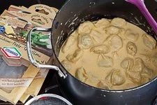 - Jetzt legst Du noch den Deckel auf den Topf und lässt alles für 10 Minuten ziehen, zum einen um die Basilikum-Pesto-Tortelloni gar ziehen zu lassen, zum anderen aber auch damit die Sauce eindickt.