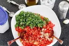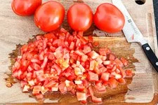 - Als erstes die Tomaten waschen und sehr klein schneiden.