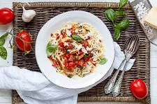 Vor ein paar Wochen habe ich mich in der Hitze dieses Jahrhundert-Sommers mit einer Freundin über sommerliche Rezepte ausgetauscht. Sie erzählte mir, dass sie gerne den klassischen Bruschetta-Tomatenbelag mit Pasta kombiniert und dies schon lange in ihr persönliches, sommerliches Koch-Repertoire fällt. Ich war sofort Feuer und Flamme und mir lief direkt das Wasser im Mund zusammen.
