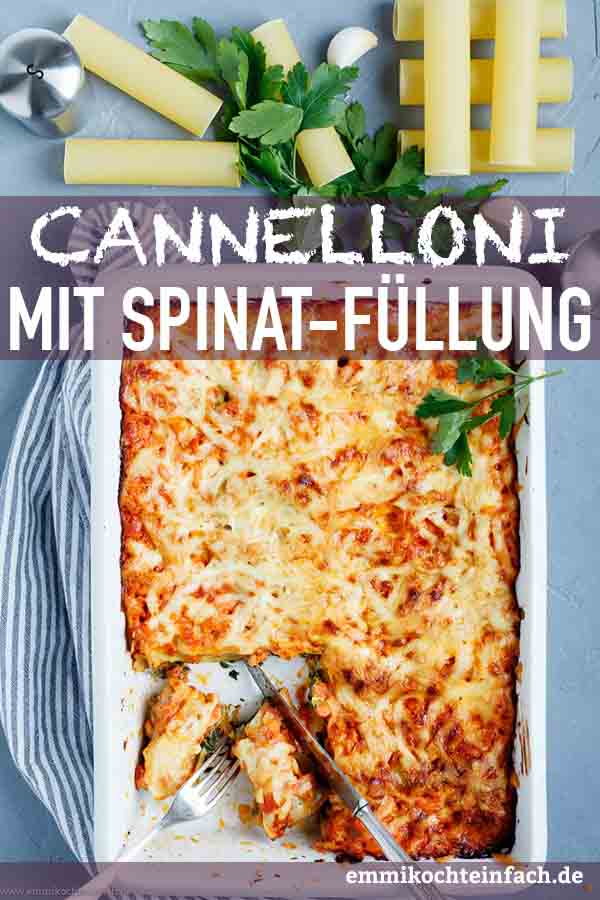 Cannelloni lassen sich perfekt vorbereiten. Du kannst entweder in Schritten vorgehen oder das ganze Pasta Gericht komplett fertig machen und mit Folie abgedeckt in den Kühlschrank stellen. Zum Beispiel, wenn Du abends nur noch die vorbereiteten Spinat Cannelloni in den Ofen schieben willst.