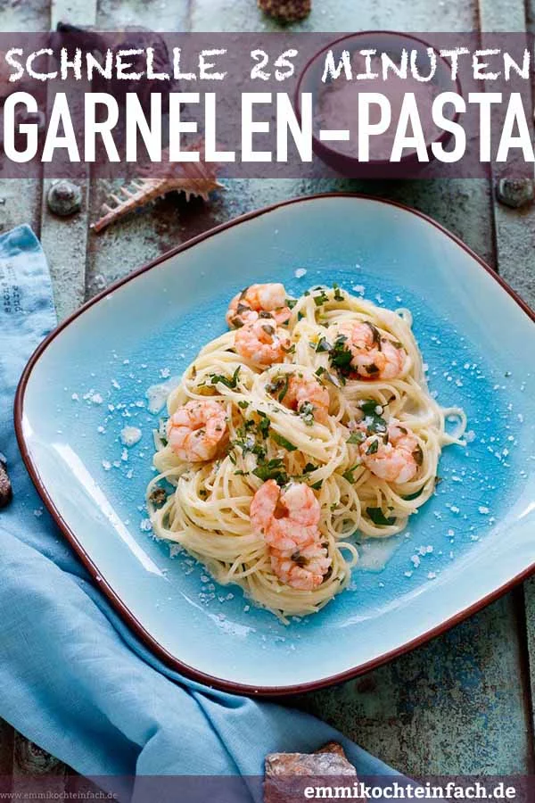 Weitere leckere Pasta-Rezepte mit Garnelen sind meine schnellen Spaghetti mit Garnelen oder meine Pasta Pomodoro mit Garnelen und Rucola.