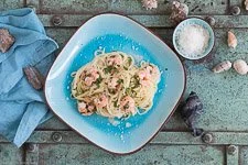 Im Handumdrehen hast Du ein sehr aromatisches Gericht gezaubert, dass sich prima als Vorspeise eignet. Für den Fall einfach die Mengenangabe halbieren. Capellini heißt übrigens Engelshaar und zählt zu den feinsten und dünnsten Spaghetti-Sorten überhaupt. Sie kochen nur 3 Minuten und ihre Konsistenz ist besonders leicht. Sie harmonieren perfekt zu der Kombination aus Garnelen, Zitrone und Sahne. Außerdem bekommst Du schon mit wenigen Gramm eine Menge Nudeln, gerade weil sie sehr dünn sind. Ich bin ein großer Fan der Capellini Spaghetti.