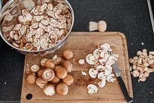 - 750 g braune Champignons - in dünne Scheiben geschnitten