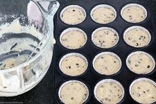 - Das 12er-Muffinblech mit den Papierbackförmchen auslegen und den Teig darin mit zwei Esslöffeln oder noch praktischer einem Eisportionierer verteilen. TIPP: Wenn Du bis ca. 0,5 cm zum oberen Rand einfüllst, kommst Du gleichmäßig und prima mit der Teigmasse hin.