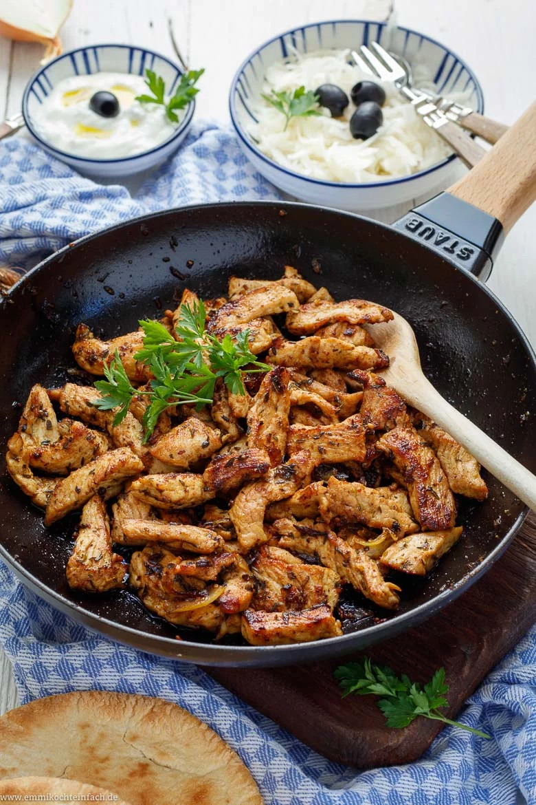 Die besten Ergebnisse erhalte ich mit einer schweren gusseisernen Pfanne oder einer gut beschichteten Bratpfanne. Beide Pfannenvarianten sind wirklich sehr gut geeignet für Gyros Geschnetzeltes. Mehr Informationen zur Bratpfanne findest Du in meinem Pfannen-Ratgeber Beitrag.