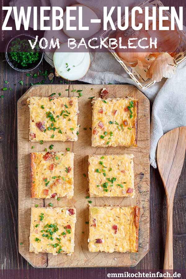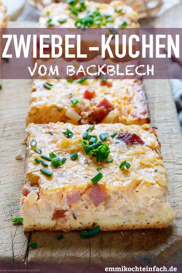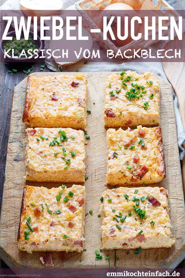 - Du kannst den einfachen Zwiebelkuchen vom Blech warm oder kalt servieren und Schnittlauch zum Garnieren verwenden.