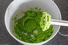 - Danach gießt Du die Erbsen ab und gibst sie in eine Schüssel, lässt sie etwas erkalten und pürierst sie mit einem Pürierstab zu einem Brei.
