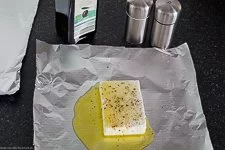 - Über jeden Feta träufelst Du 2 EL Olivenöl und würzt mit Pfeffer und sehr wenig Salz (der Käse ist schon sehr salzig).