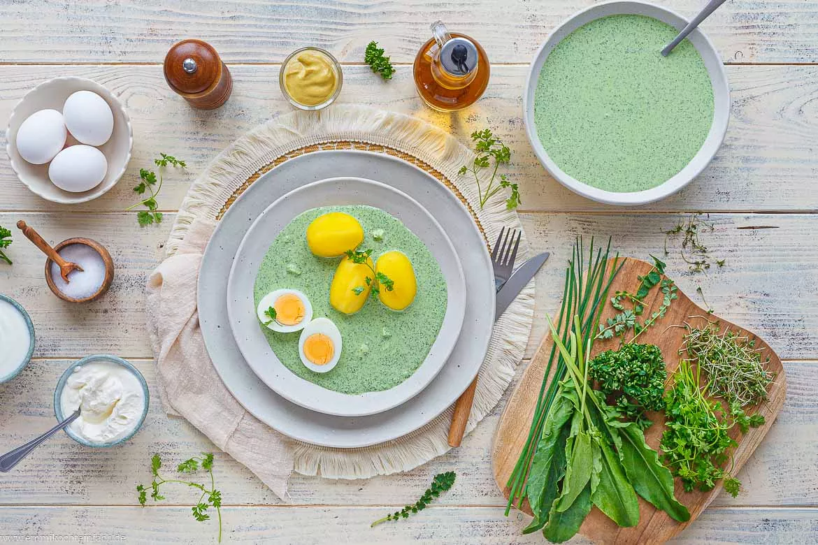 Frühlingszeit ist Kräuterzeit! Kommen im Frühjahr die ersten Sonnenstrahlen zum Vorschein, verwöhnt die erfrischende Frankfurter Grüne Soße deinen Gaumen mit herrlichen Aromen.