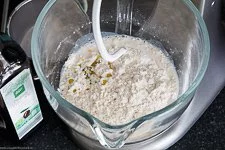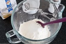 - Als erstes gibst Du das Mehl in eine Schüssel und vermengst es mit dem 1 TL Salz und der Prise Zucker.