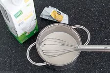 - Jetzt erwärmst Du die Milch auf dem Herd oder Mikrowelle, so dass sie lauwarm, also wirklich nur ganz leicht gewärmt ist (auf keinen Fall heiß, sprich nicht wärmer als 40 Grad, sonst aktiviert die Hefe nicht!) und löst in der Milch die Hefe vollständig auf.