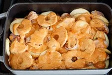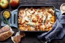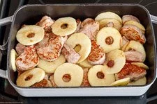 Gratinierter Schweinefilet-Apfel-Auflauf mit Currysahne