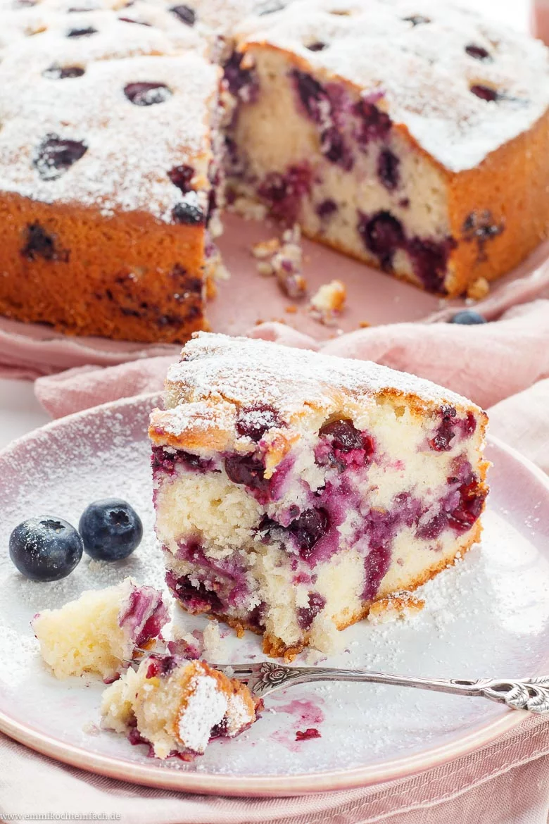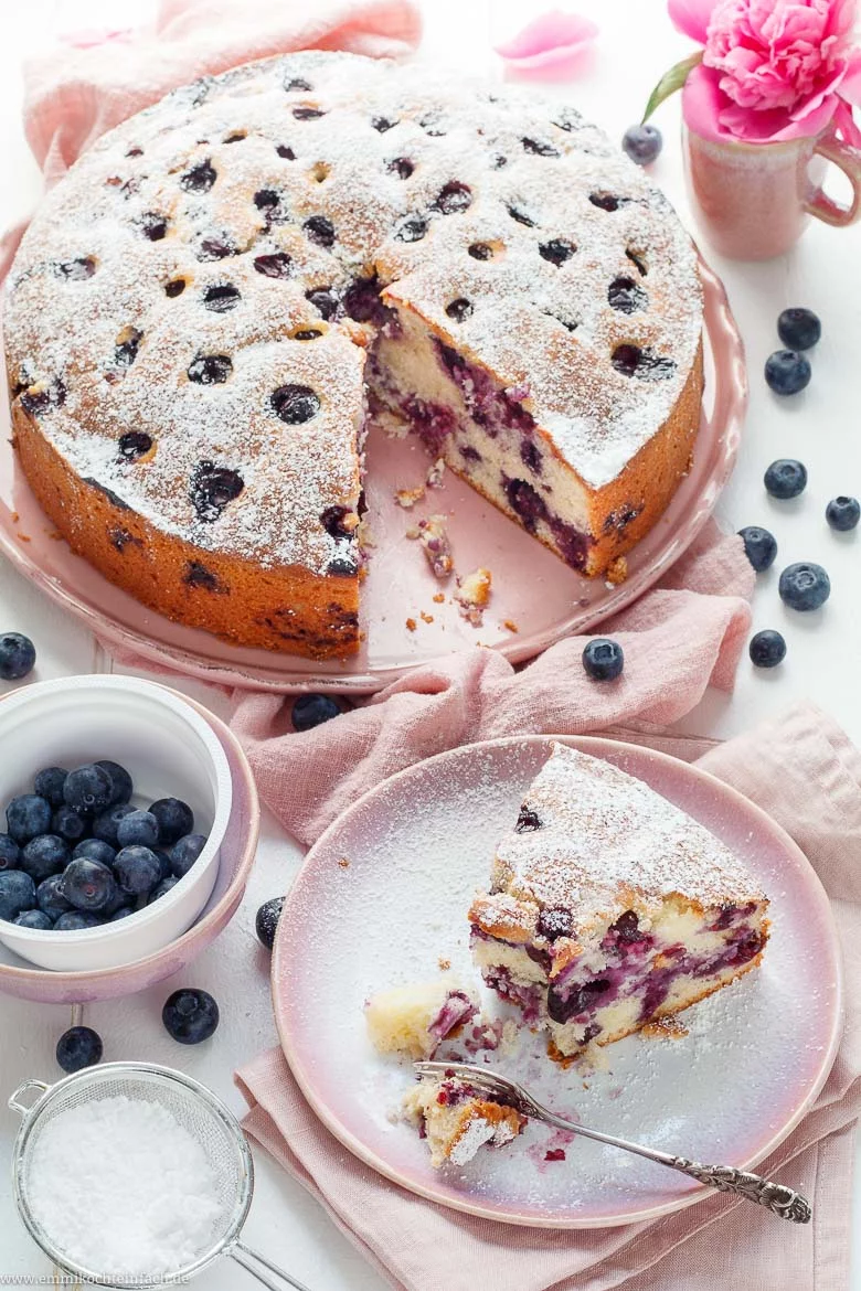 - Ein saftiger Kuchen mit Heidelbeeren, der sich über Tage saftig hält.