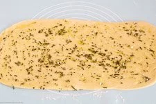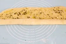 - Nun bestreichst Du das erste Teigstück bis zum Rand dünn mit dem Rosmarin/Knoblauch-Öl.