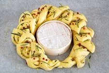 Nach vielen Überlegungen und Versuchen entstand mein herzhafter Brotkranz mit Ofenkäsedip. Ich habe den Brotkranz mit Ofenkäse ergänzt, weil das meine Vorstellungen für die diesjährigen Weihnachtstage prima erfüllt. Der Ofenkäse wird gemeinsam mit dem Brotkranz im Ofen gebacken. Meine Idee dabei war außerdem, den Brotkranz mit weiteren Dip-tauglichen Köstlichkeiten wie zum Beispiel Ananas, Birnen, Rohkost oder Schinken ganz nach Belieben zu ergänzen. Einfach alles worauf man Lust hat mit dem leckeren heißen Ofenkäse zu genießen.
