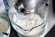 - Dann vermengst Du das Weizenmehl mit dem Salz und gibst es schrittweise zur Hefemilch und dem Ei. Am Besten den Knethaken des Handmixers oder der Küchenmaschine verwenden. BITTE BEACHTE: Diese Reihenfolge ist für das Gelingen sehr wichtig, also das Mehl in die Hefemilch und nicht umgekehrt.Den Teig solltest Du insgesamt 7-10 Minuten kneten bis er schön geschmeidig ist. Er sollte nicht an den Fingern kleben.