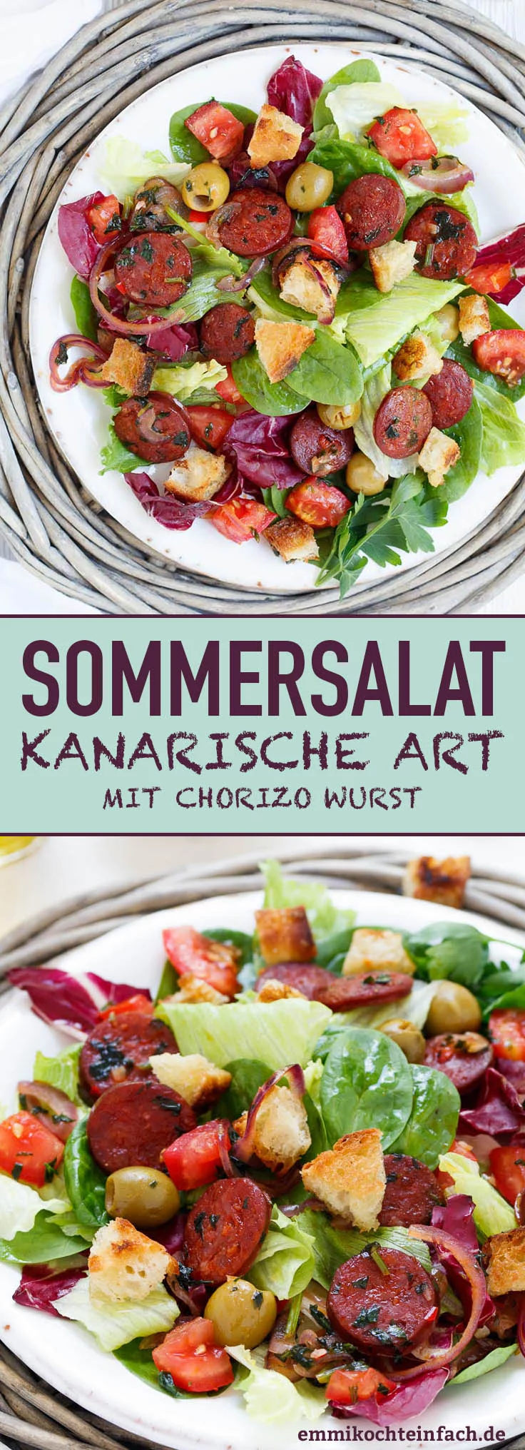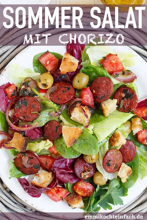 Hallo Andrea, hab den Salat zwar noch nicht testen können, denke aber die Chorizo kann man durch Würzen der Croutons mit geräuchtertem Paprikapulver zumindest geschmacklich ganz gut imitieren. 🙂 Hallo Emmi, der Salat hört sich wirklich nach Urlaub an. Der steht schon auf dem Speiseplan für die nächste Woche. Liebe Grüße Steffi