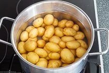 - Nach dem Kochen die Drillingskartoffeln ungefähr 10 Minuten abkühlen lassen.