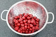 - Als erstes heizt Du Deinen Backofen auf 200 Grad Ober-/Unterhitze auf. Dann die Kirschen in ein Sieb schütten, damit sie gut abtropfen und die Butter schon mal aus dem Kühlschrank holen, damit sie weich wird.