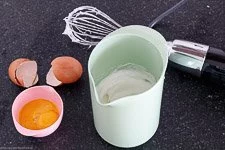 - Die Eier trennen und das Eiweiß steif schlagen. Den entstandenen Eischnee kurz zur Seite stellen.