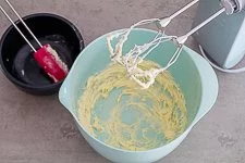- Die Butter rührst Du mit den Quirlen des Handmixers oder der Küchenmaschine in einer mittelgroßen tiefen Schüssel cremig.