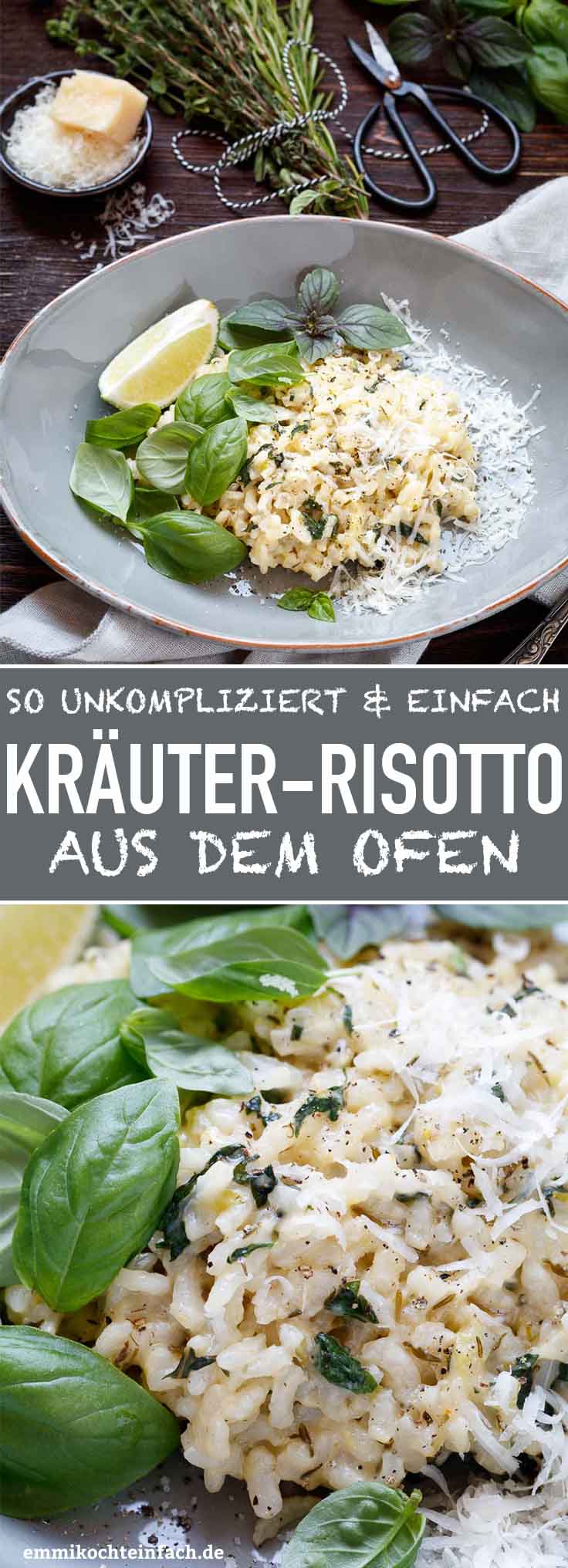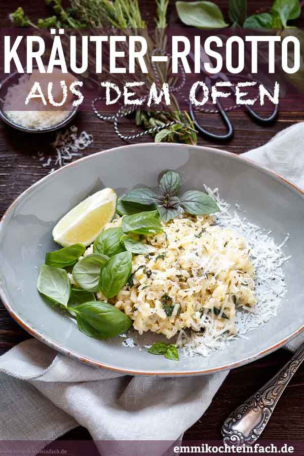 Die Wahl der Kräuter kannst Du für mein Kräuter Risotto aus dem Ofen selbstverständlich beliebig wählen. Außerdem hast Du die Möglichkeit alle Kräuter erst nach dem Garen, gemeinsam mit Basilikum und Parmesan, unterzurühren und Frühlingszwiebeln und Knoblauch alleine anzudünsten. Meiner Erfahrung nach ist es bei Kräuter Risotto so eine Glaubensfrage bei welchem Kochschritt die Kräuter am besten eingearbeitet werden.