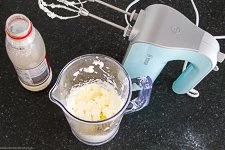 - Die Sahne schlägst Du mit den Quirlen eines Handmixers oder der Küchenmaschine steif. Wenn Du magst, kannst Du auch Sahnesteif verwenden.