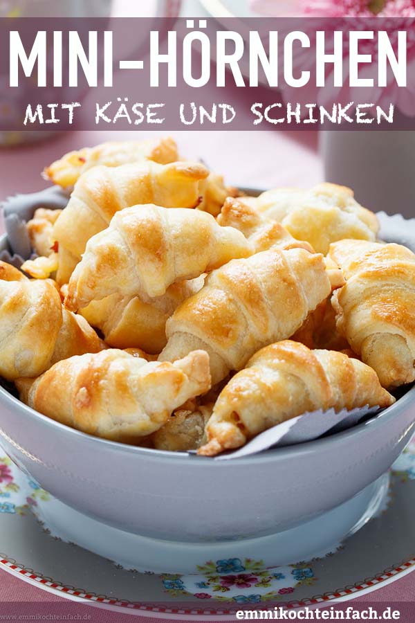 Weitere herzhafte und handliche Snacks neben meinen Schinken-Käse-Hörnchen sind meine Mini-Pizzen oder meine gefüllten Käse-Schinken-Taschen.