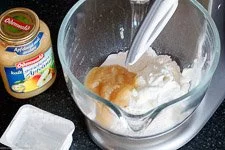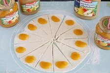 - Jetzt gibst Du auf jedes "Tortenstück" ca. 1 TL Apfelmus einer Sorte Deiner Wahl.