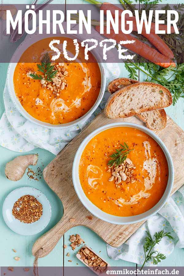 In meiner Rezept-Kategorie Suppen & Eintöpfe wirst Du noch weiterhin fündig, falls Du noch weitere Inspirationen neben meiner schnellen Möhrensuppe mit Ingwer finden möchtest. Sowohl deftige und herzhafte Eintöpfe für alle Jahreszeiten als auch weitere leichte, vegetarische Varianten wie meine Champignon Suppe mit Curry, meine cremige Kartoffel Lauch Suppe oder meine cremige Tomatensuppe fürs ganze Jahr.