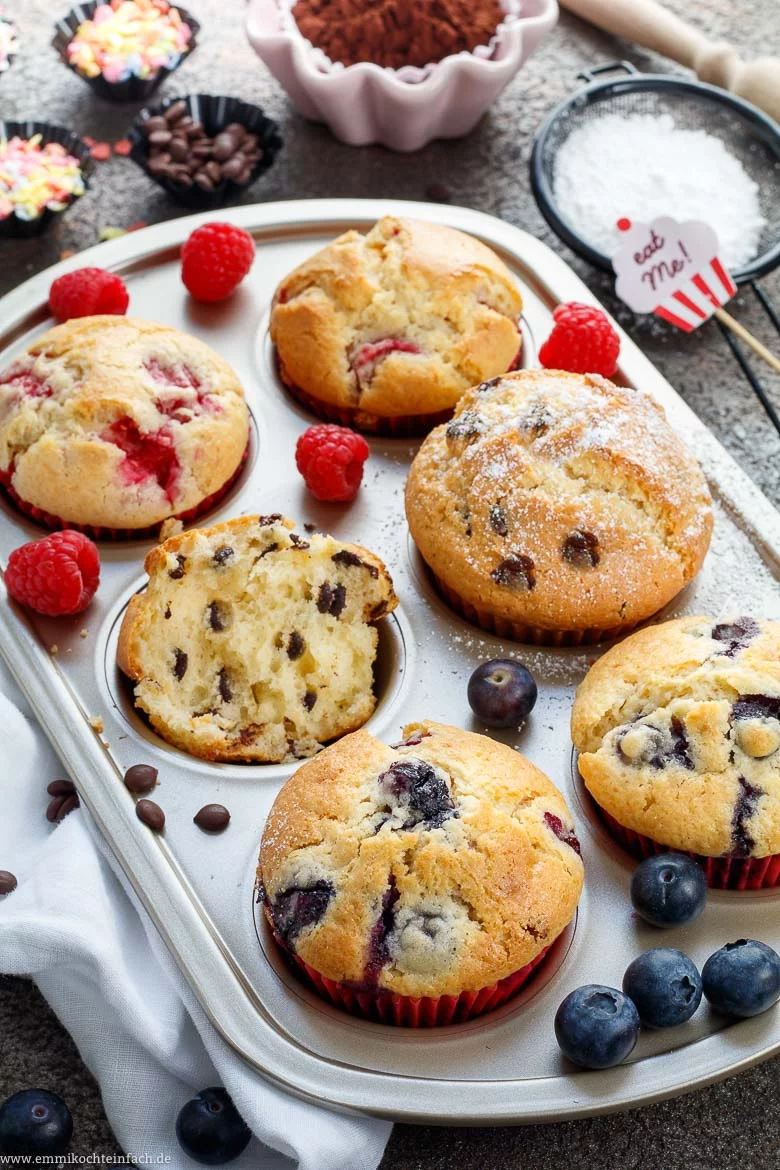 Muffins nach meinem Muffins-Rezept sind fluffig, schmecken himmlisch süß und sind schnell zubereitet. Die kleinen Portionen aus Rührteig werden zu saftigen Küchlein gebacken und sind wunderbar vielfältig.