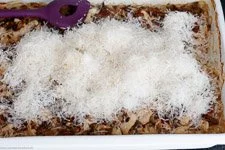 - Wenn die Zeit abgelaufen ist, das Risotto aus dem Ofen nehmen und die zerkleinerte Butter sowie den Parmesan hinzufügen.