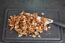 - Jetzt schneidest Du die Steinpilze klein und hältst sie bereit. Die Hühnerbrühe kannst Du nun auch bereitstellen.
