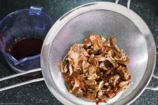 - Dann gießt Du die Steinpilze ab und fängst das Einweichwasser auf