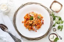 Ofenrisotto mit Möhren und getrockneten Tomaten