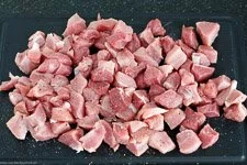 - 1 kg Schweinefleisch, alternativ Putenfleisch (gerne Bio, z.B. Gulasch) - in mundgerechte Stücke geschnitten