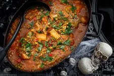 Aber was soll ich Dir sagen, die Party Ofensuppe hat mich sehr überzeugt. Denn einfacher und stressfreier kann man eine Mahlzeit für eine große Feier nicht zubereiten, ob wie ich für meine Halloween-Feier oder wann anders. Deshalb wollte ich Dir dieses Rezept nicht vorenthalten. Du kannst die Party Ofensuppe ohne weiteres für 10, 20 oder noch viel mehr Personen ganz unkompliziert zubereiten, das einzige was Du benötigst ist ein sehr großer, ofenfester Topf bzw. eine Kasserolle.