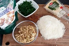 - Außerdem den Parmesan fein reiben, die Walnüsse grob hacken sowie die Petersilie waschen, trocknen und fein hacken.