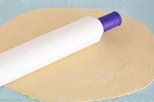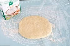 • Nachdem der Teig schön gekühlt ist, solltest Du Deine Arbeitsfläche noch einmal leicht bemehlen und den Teig von der Mitte nach außen, etwa 4 mm dünn ausrollen.
