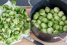 - Den Rosenkohl wäschst Du, lässt ihn abtropfen und schneidest die Strünke großzügig ab, damit die äußeren Blätter fast von alleine abfallen, die Strünke kreuzweise einschneiden und die Rosenköhlchen dabei direkt in einen Topf geben. HINWEIS: Die Strünke schneidet man ein, damit der Rosenkohl gleichmäßiger gart. Ich mache das nicht immer, meistens wenn die Rosenkohlköpfe etwas größer sind.