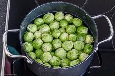 - Den Topf mit Rosenkohl füllst Du mit Wasser auf, so dass der Rosenkohl gut mit Wasser bedeckt ist, etwas Salz dazu und für 10 Minuten ganz sanft (ohne Deckel) köcheln lassen.