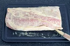 - Dann streichst Du den Braten mit einer beliebigen Senfsorte dünn auf allen Seiten ein.