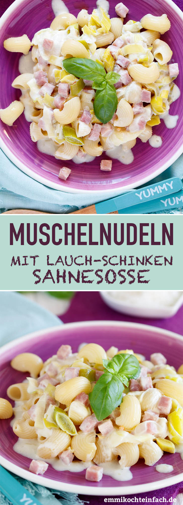 Die cremige Schinken-Sahne-Soße verfeinere ich am liebsten mit frischem Lauch, das harmoniert wunderbar! Ein herrliches Geschmackstrio, das die Pasta von allen Seiten umschmeichelt.