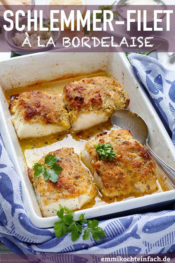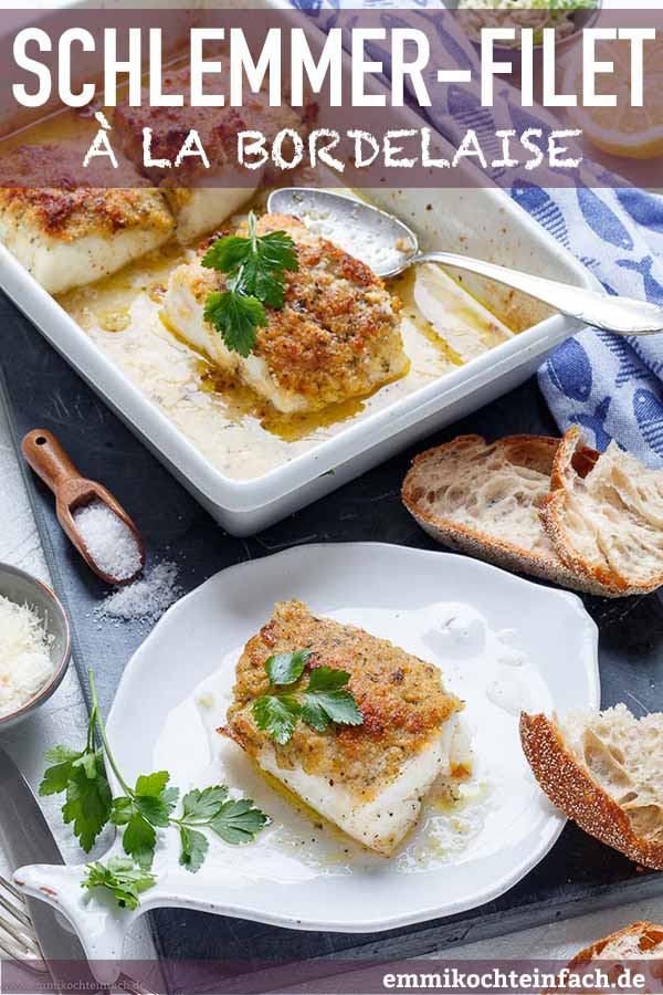 Übrigens, kannst Du das Schlemmerfilet à la Bordelaise auch ganz toll für viele Personen zubereiten. Einfach die Menge verdoppeln und Deine Fischfilet-Stücke im Backofen auf einem Backblech zubereiten.