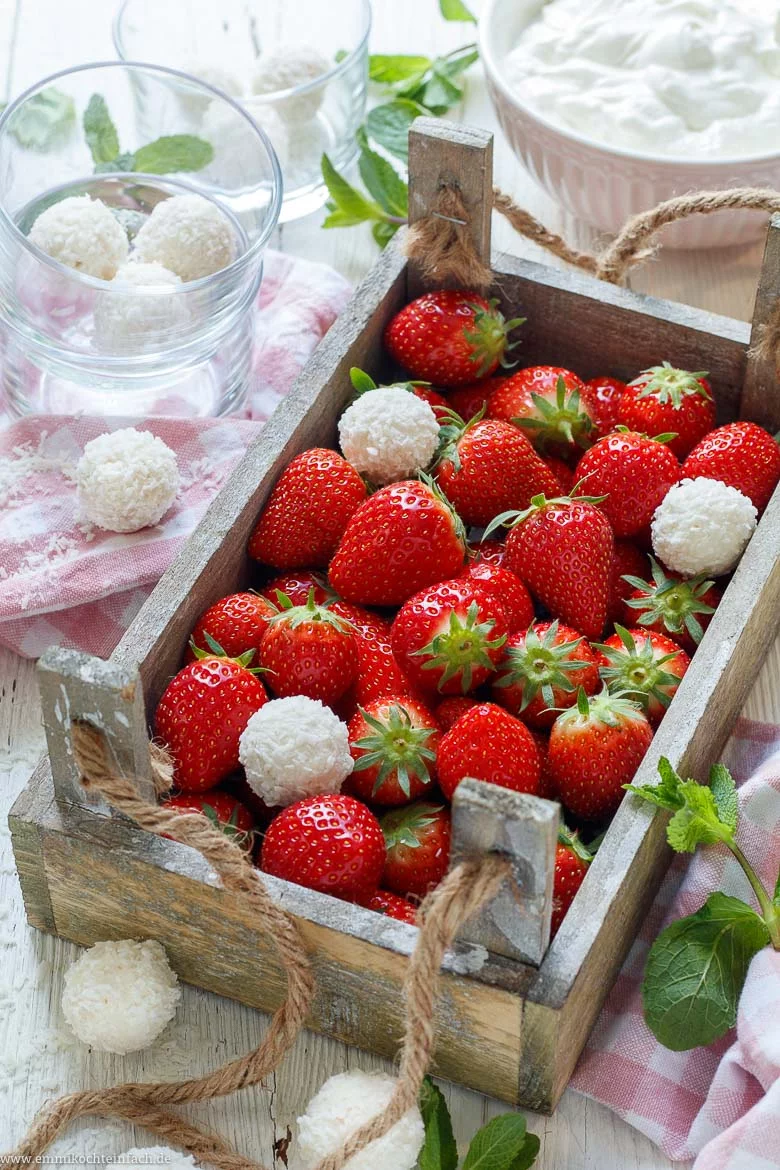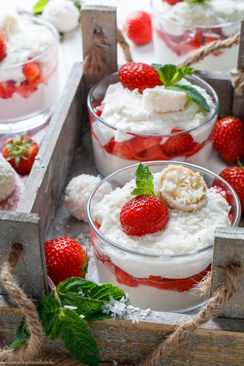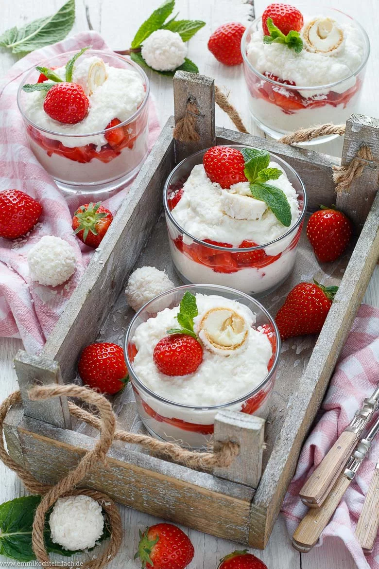 Möchtest du das Raffaello-Dessert mit Erdbeeren variieren, habe ich hier ein paar köstliche Kombinationen für dich: